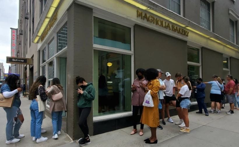 Cupcakes are single-serving, portable desserts, as are cookies, brownies, candy bars, and so on. Yet it’s cupcakes that persistently inspire people to queue up.
